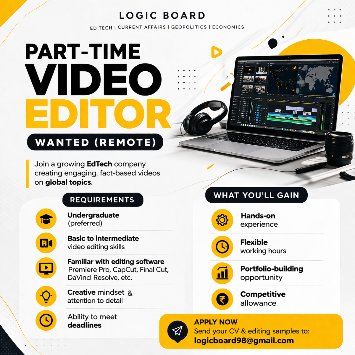 Are you an undergraduate with a passion for content creation and a flair for video editing? Logic Board, a fast growing EdTech company covering current affairs, geopolitics and economicsĀ is looking for a creative and reliable part time video editor to join our remote team.
