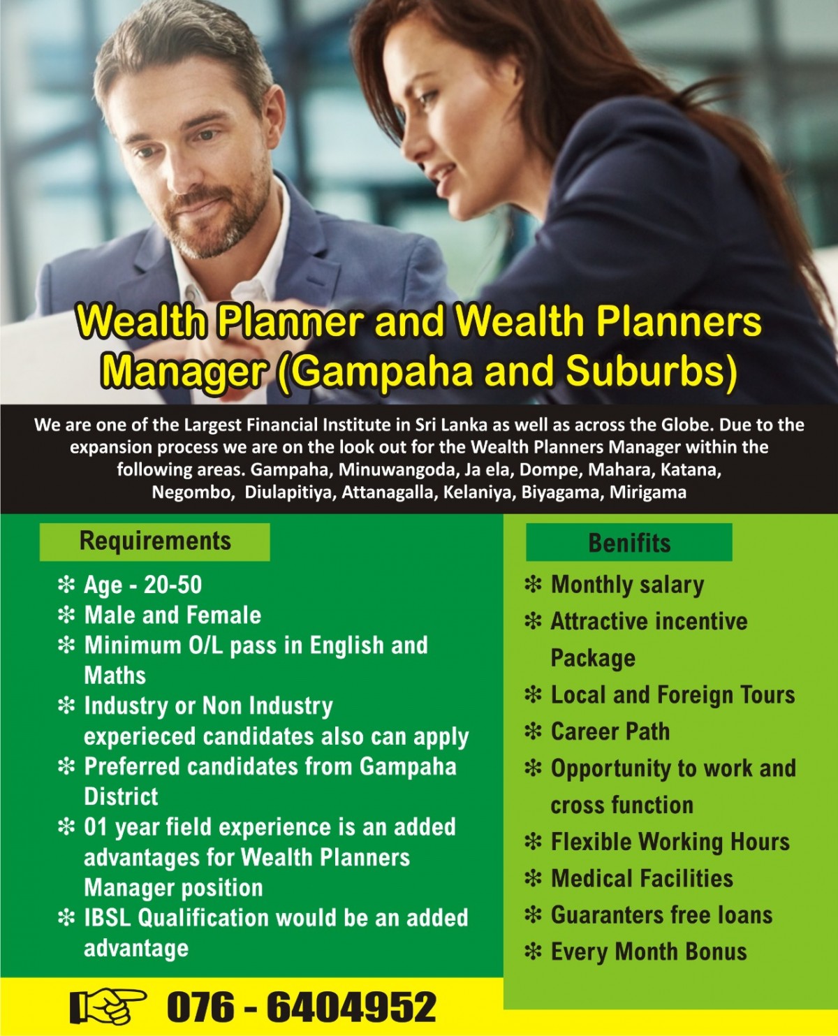 Wealth Planners/ Wealth Planner Manager (Gampaha and Suburbs)