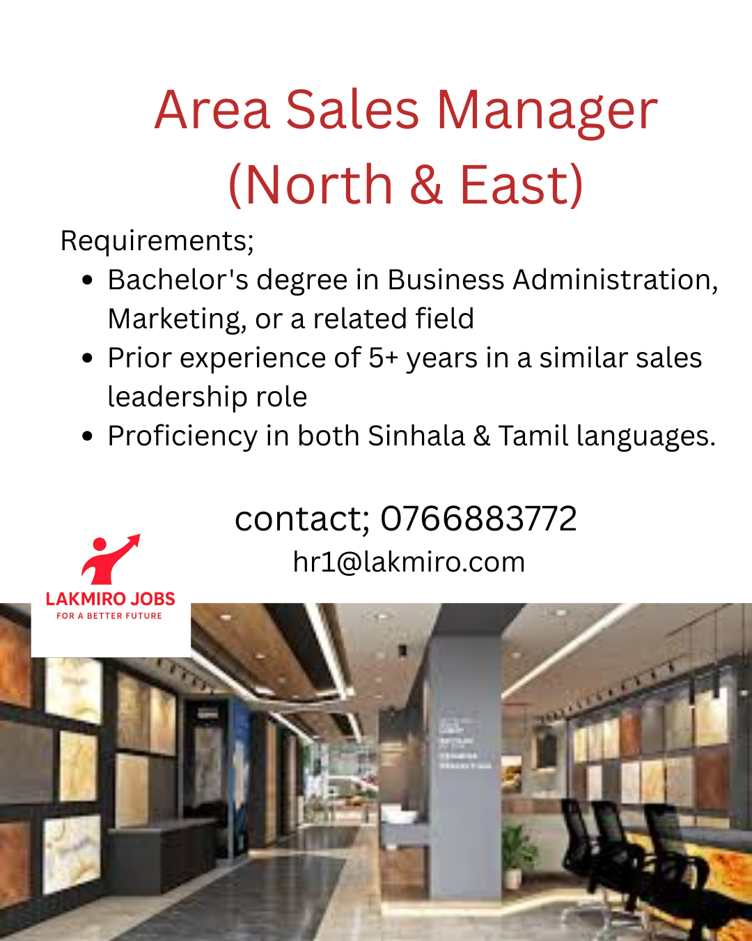 Area Sales Manager, Northern & Easten Provinces, digree in business management ,