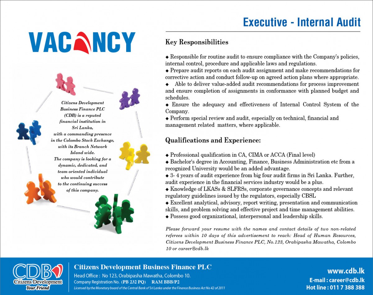 Citizens Development Business Finance PLC is looking for Executive – Internal Audit.