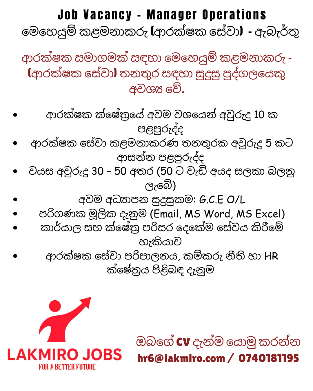 MANAGER OPERATIONS - (SECURITY SERVICE)