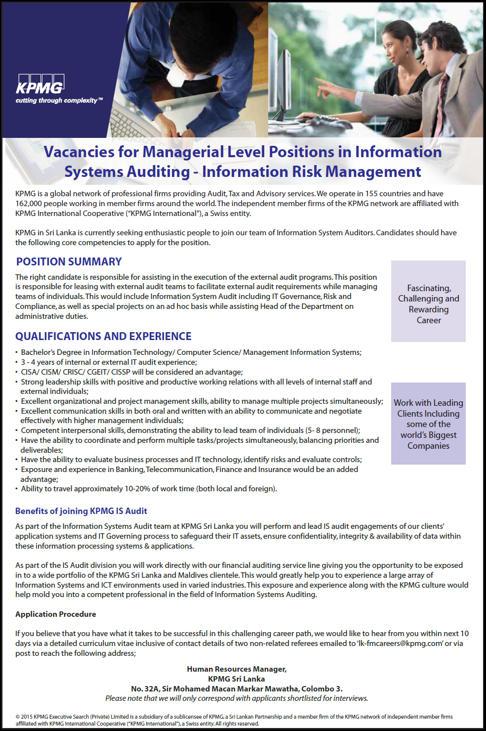 Managerial Level Positions in Information Systems Auditing - Information Risk Management