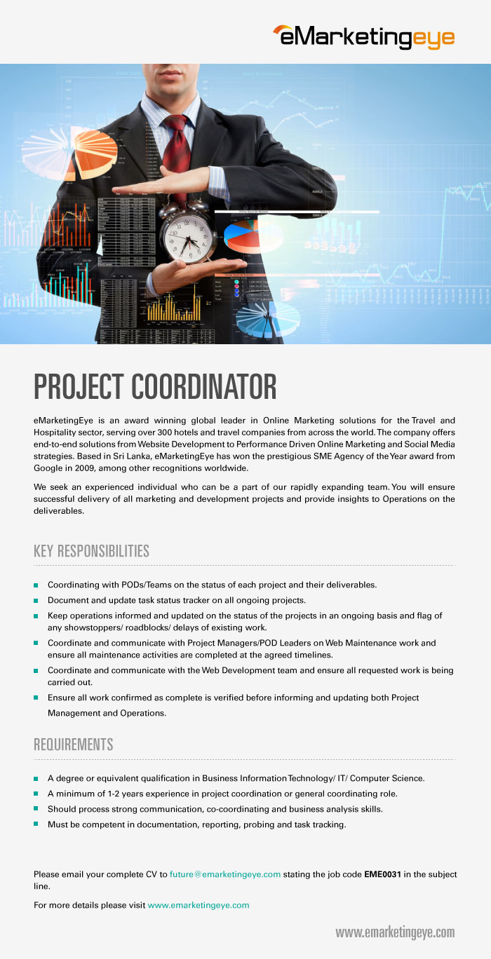 A minimum of 1-2 years experience in project coordination or general coordinating role.