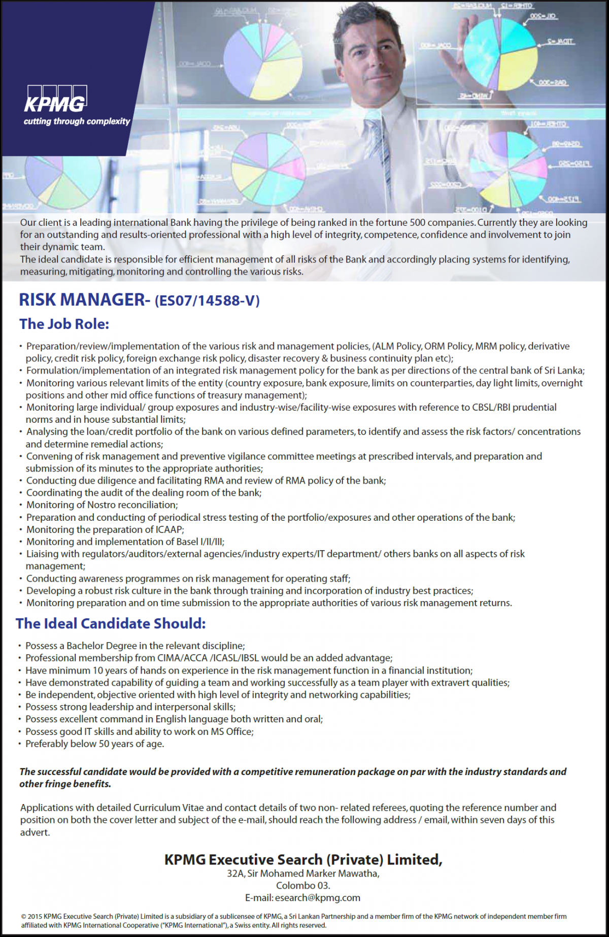 • Have minimum 10 years of hands on experience in the risk management function in a financial institution.