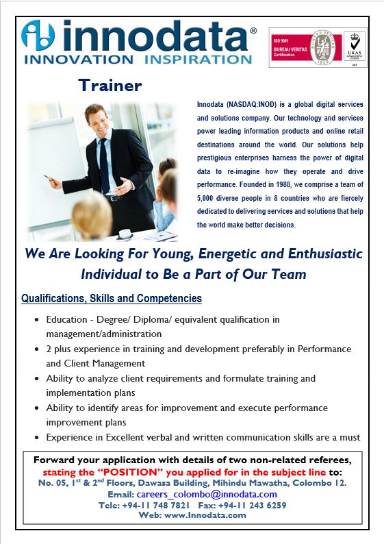 2 plus years experience in training and development preferably in Performance and Client Management.